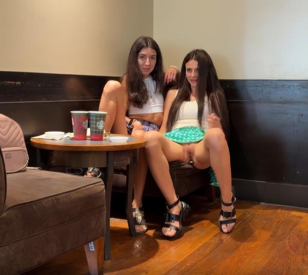 Две подружки - Kate Rich и Katty West сидели в кафе в коротеньких юбочках и флиртовали с незнакомыми мужиками. Доигрались вплоть до того, что занялись групповым сексом с ними.